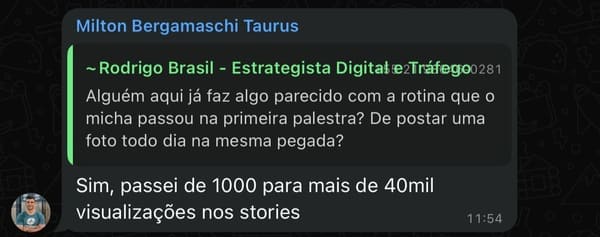 Sempre detestei produzir conteúdo, e ficar na briga eterna dos algoritmos. E por isso decidi desenvolver um método em que a produção de conteúdos fosse leve e estratégica, sem a dependência de postagens diárias, e o principal, desenvolvi uma máquina invisível na rede social, que atrai todos os dias seguidores que estão dispostos a pagar mais caro e que imploram para comprar todos os dias.